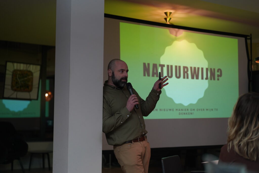 Maar terug naar het begin. Op het scherm verscheen: “Natuurwijn – Wat is het? Waarom is het er?” Vooral die ‘waarom’ heeft Lander uitgebreid toegelicht.